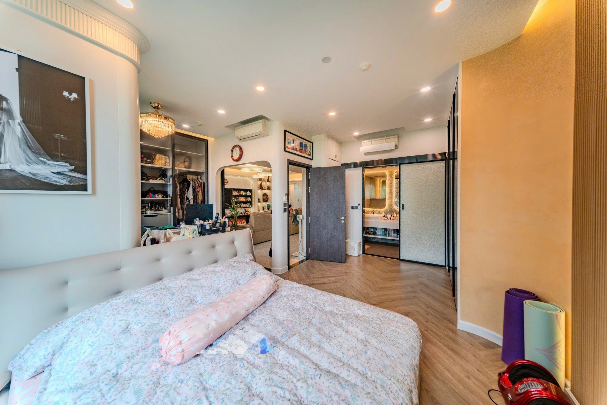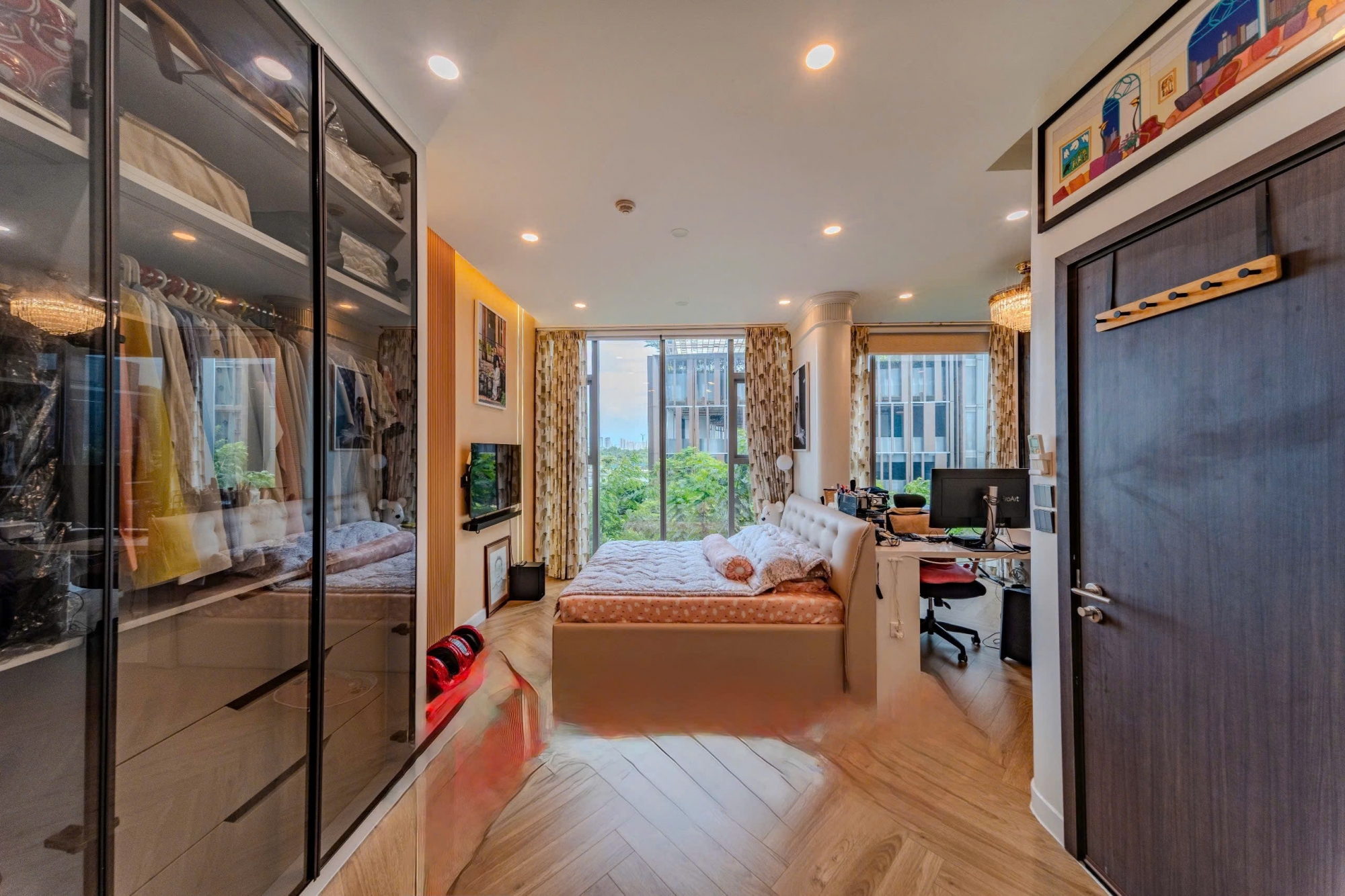 Toàn bộ căn hộ được trang bị full nội thất cao cấp, lựa chọn kỹ lưỡng từ sofa, bàn ăn, giường ngủ, hệ tủ âm tường đến các thiết bị điện tử và gia dụng hiện đại. Các phòng ngủ đều có diện tích rộng, ánh sáng tự nhiên tốt, đảm bảo sự riêng tư và thư giãn tuyệt đối cho từng thành viên trong gia đình.