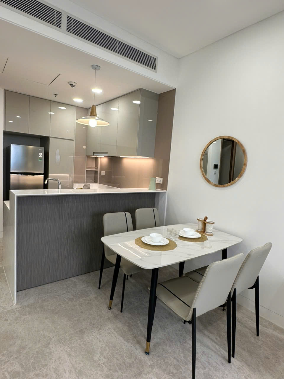 Căn hộ được trang bị đầy đủ nội thất hiện đại, phong cách tối giản, sang trọng, sử dụng các vật liệu chất lượng cao, mang đến không gian sống tinh tế và tiện nghi. Chỉ cần xách vali vào ở hoặc cho thuê ngay, không cần đầu tư thêm.