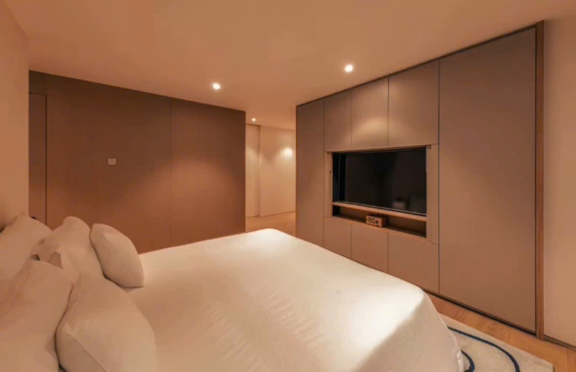 Không gian tầng trên mang tính riêng tư cao, phù hợp làm phòng ngủ master, phòng làm việc hoặc lounge thư giãn. View panorama tuyệt đẹp, bao quát toàn cảnh khu đô thị Thủ Thiêm và trung tâm thành phố, đặc biệt ấn tượng cả ban ngày lẫn ban đêm.