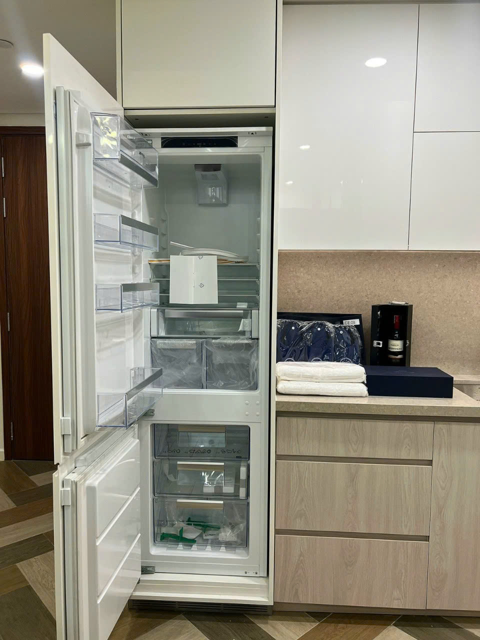 Căn hộ được thiết kế tinh tế, đầy đủ nội thất hiện đại và cao cấp, bố trí khoa học, tối ưu công năng nhưng vẫn đảm bảo sự thoáng đãng và sang trọng. Phòng khách ấm cúng, kết nối hài hòa với khu bếp và bàn ăn, tạo nên không gian sinh hoạt tiện nghi và đẳng cấp.