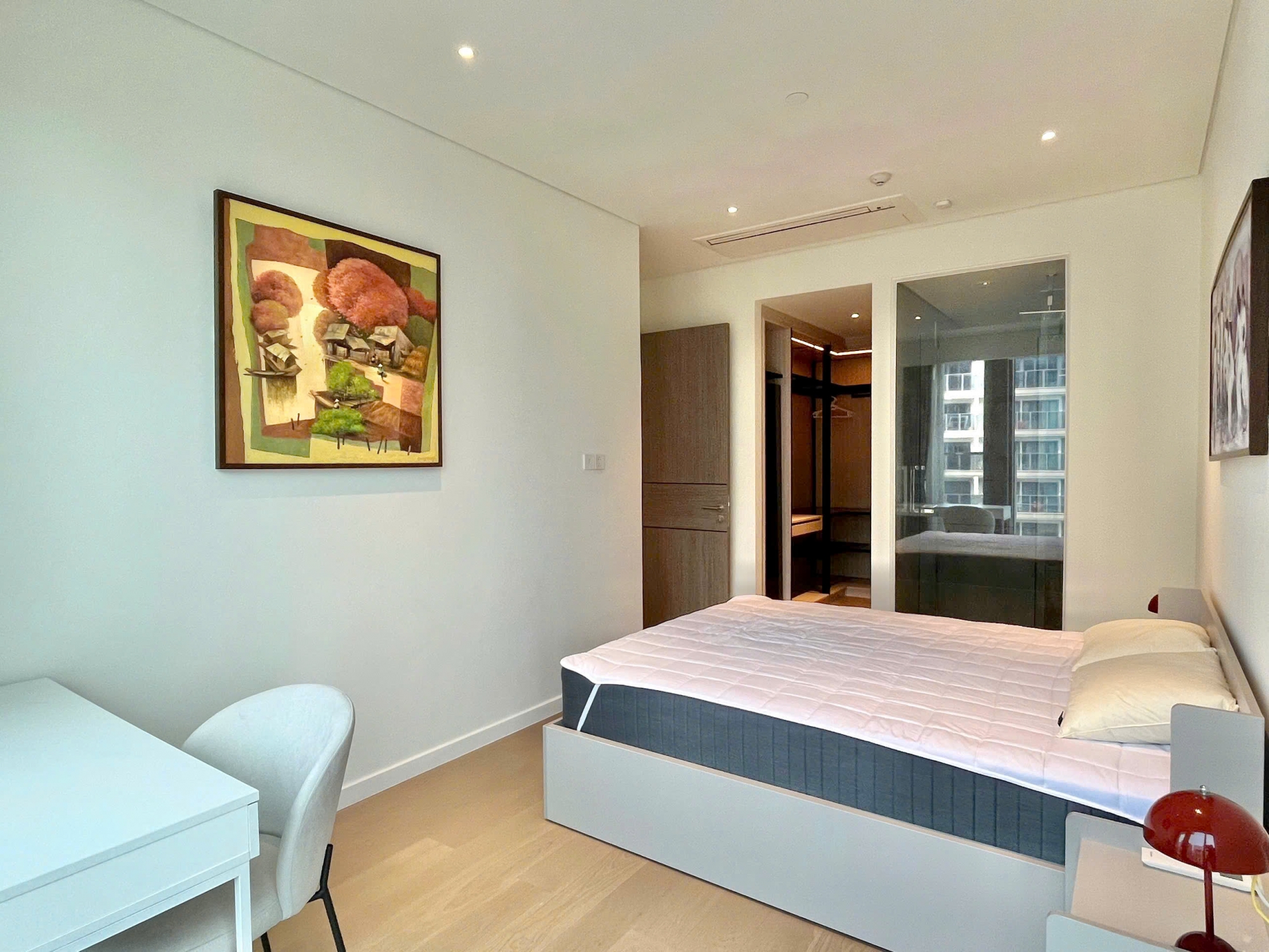 • Phòng ngủ ấm cúng, giường lớn, tủ quần áo âm tường, view thoáng