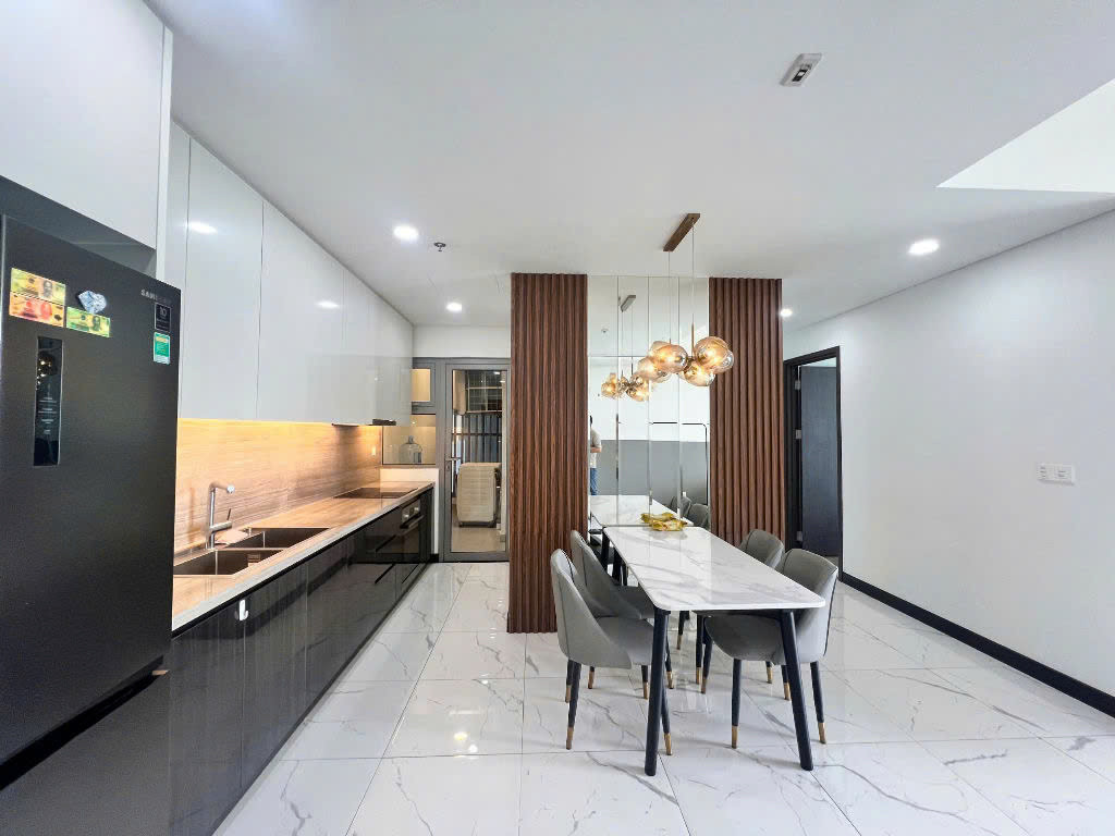 Căn hộ diện tích 93m2, thiết kế rộng rãi với phòng khách liên thông khu bếp tạo không gian mở. Ban công có view thoáng, đón ánh sáng tự nhiên và gió mát. Nội thất được trang bị đầy đủ, phù hợp cho gia đình hoặc chuyên gia nước ngoài.