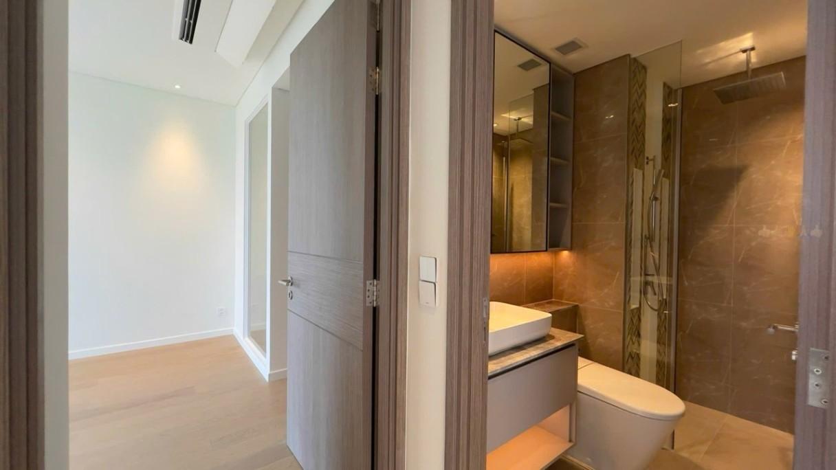 Điểm nhấn nổi bật của căn hộ là view trực diện Tháp Tài Chính Marina, tầm nhìn mở, đẹp và hiếm tại khu vực Thủ Thiêm. Hệ cửa kính lớn giúp ánh sáng tự nhiên tràn ngập khắp không gian sống, mang lại cảm giác dễ chịu và thư giãn mỗi ngày.