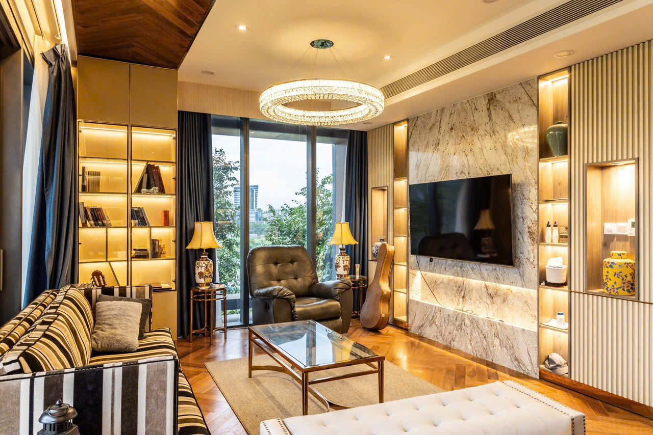 Căn hộ có diện tích 153m², thiết kế 3 phòng ngủ rộng rãi, bố trí hợp lý, tối ưu công năng sử dụng. Phòng khách lớn kết nối ban công rộng, tận dụng tối đa ánh sáng tự nhiên và tầm nhìn ra sông.
