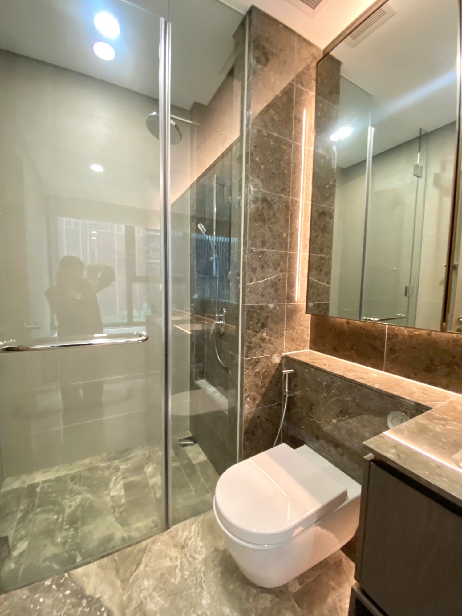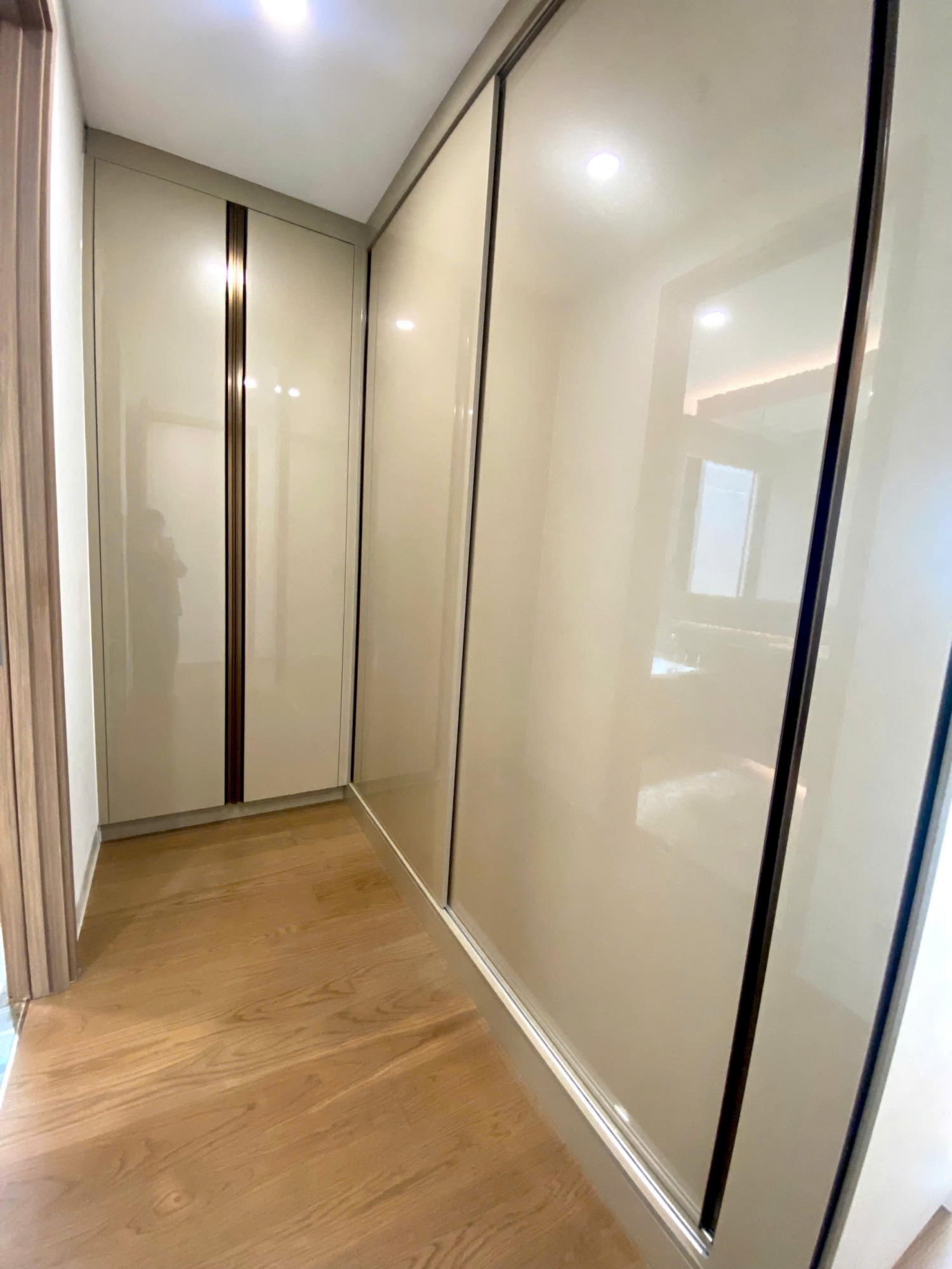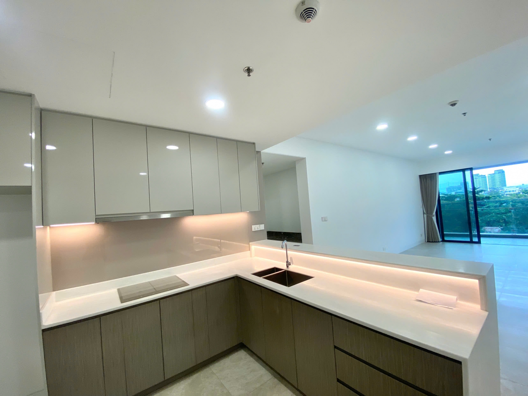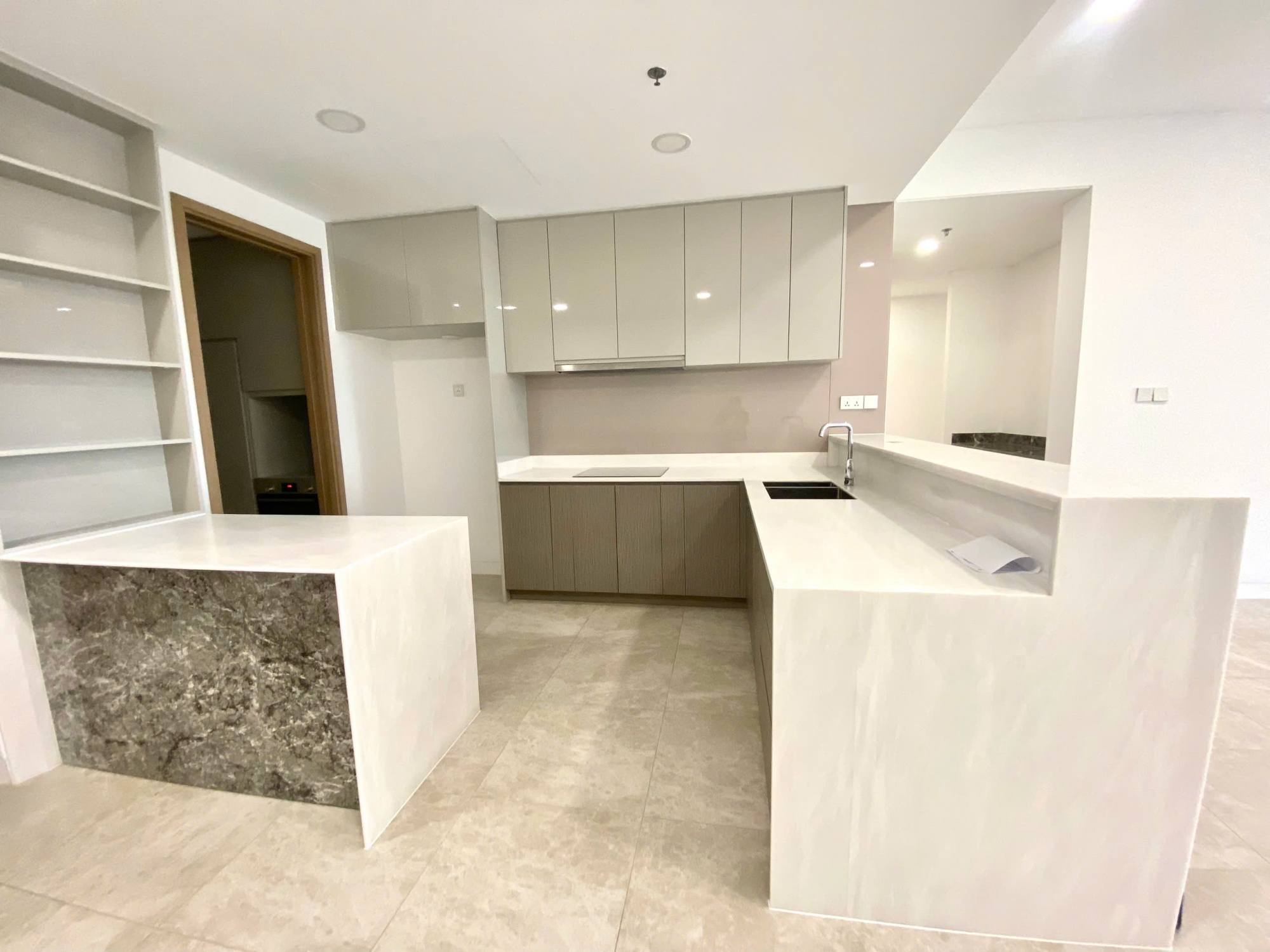 Căn hộ bàn giao nội thất cơ bản cao cấp, bao gồm hệ thống bếp, thiết bị vệ sinh, máy lạnh âm trần và tủ âm tường – phù hợp cho khách thuê muốn tự thiết kế và bố trí theo phong cách riêng.