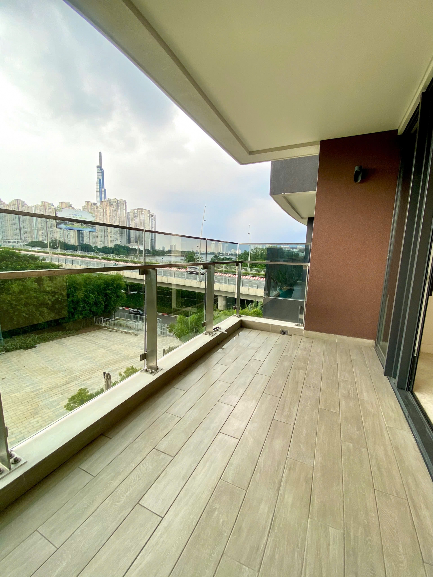 Điểm nhấn đặc biệt của căn hộ là ban công rộng với tầm nhìn trực diện sông Sài Gòn và trung tâm Quận 1. Từ đây có thể chiêm ngưỡng toàn cảnh skyline thành phố, bao gồm biểu tượng Landmark 81, đồng thời là vị trí lý tưởng để ngắm pháo hoa trong các dịp lễ lớn.
