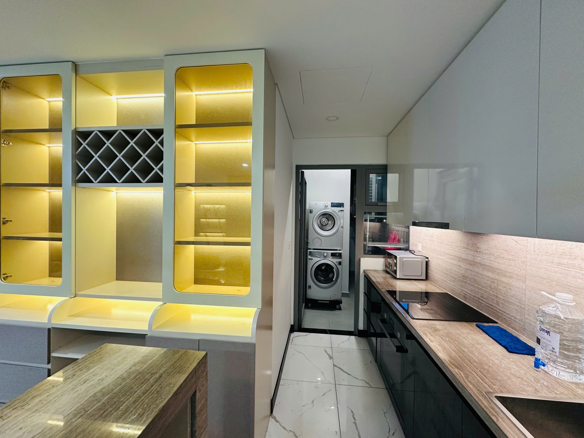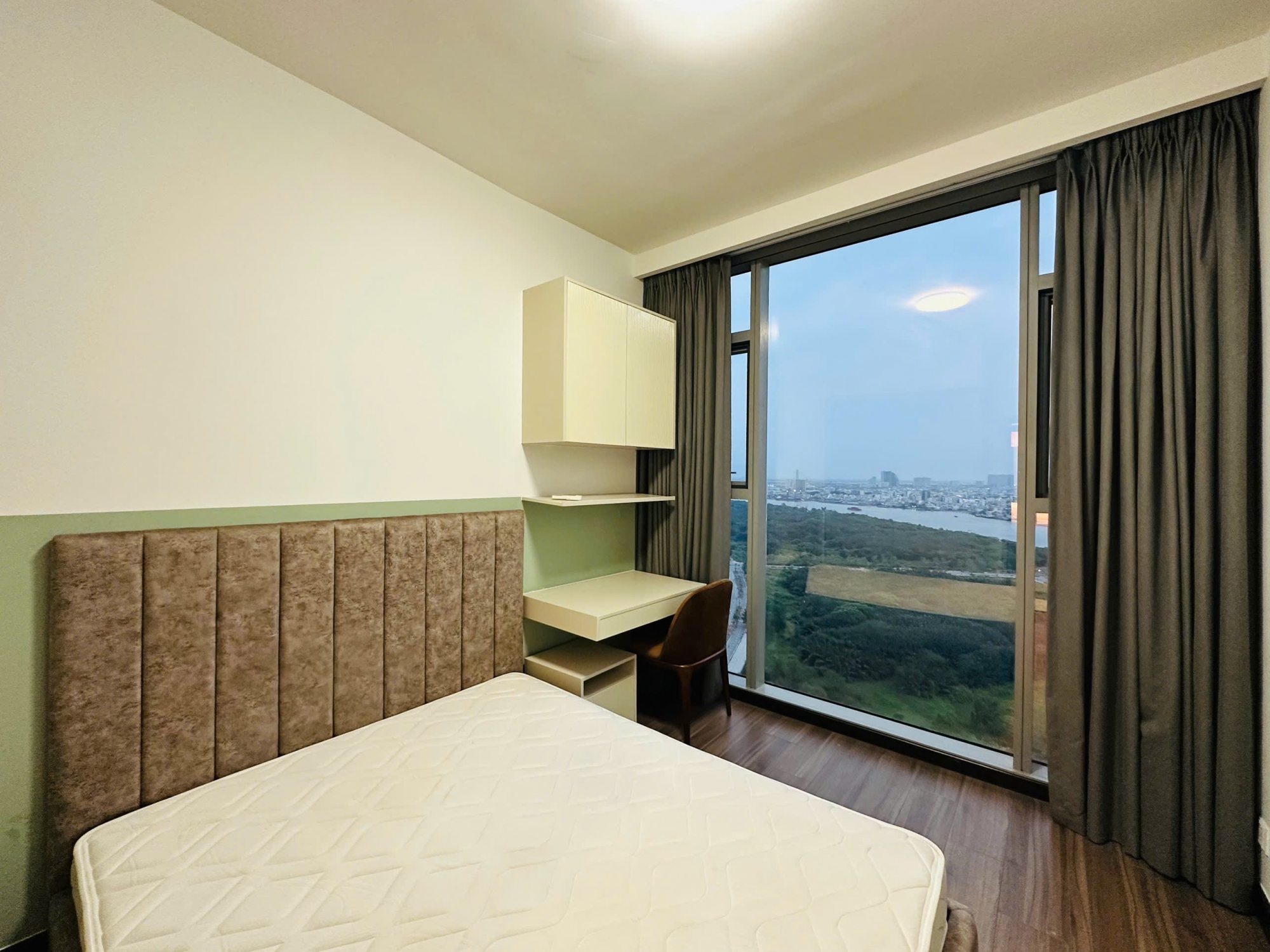 Căn hộ được bố trí 2 phòng ngủ, nằm ở tầng cao với view thoáng mát, đón gió và ánh sáng tự nhiên, mang lại cảm giác dễ chịu suốt cả ngày. Thiết kế không gian mở giữa phòng khách, khu bếp và bàn ăn giúp căn hộ luôn rộng rãi và tối ưu công năng sử dụng.