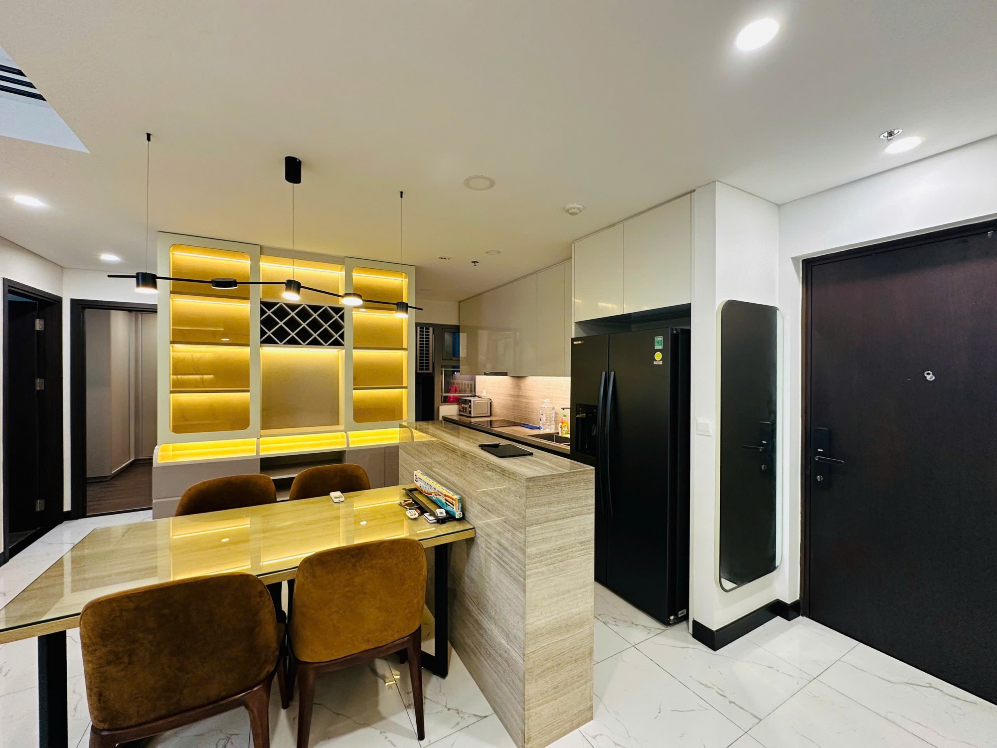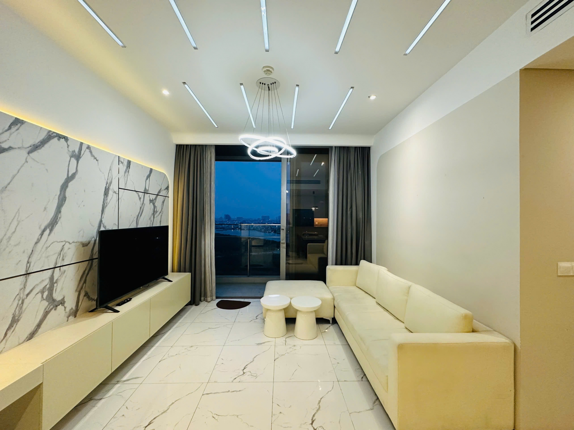 Toàn bộ căn hộ được trang bị full nội thất hiện đại, lựa chọn kỹ lưỡng với tông màu trang nhã, phù hợp cho khách thuê ở lâu dài. Người thuê chỉ cần mang vali vào ở, không cần sắm sửa thêm. Các thiết bị điện tử và nội thất đều trong tình trạng tốt, đáp ứng đầy đủ nhu cầu sinh hoạt hằng ngày.