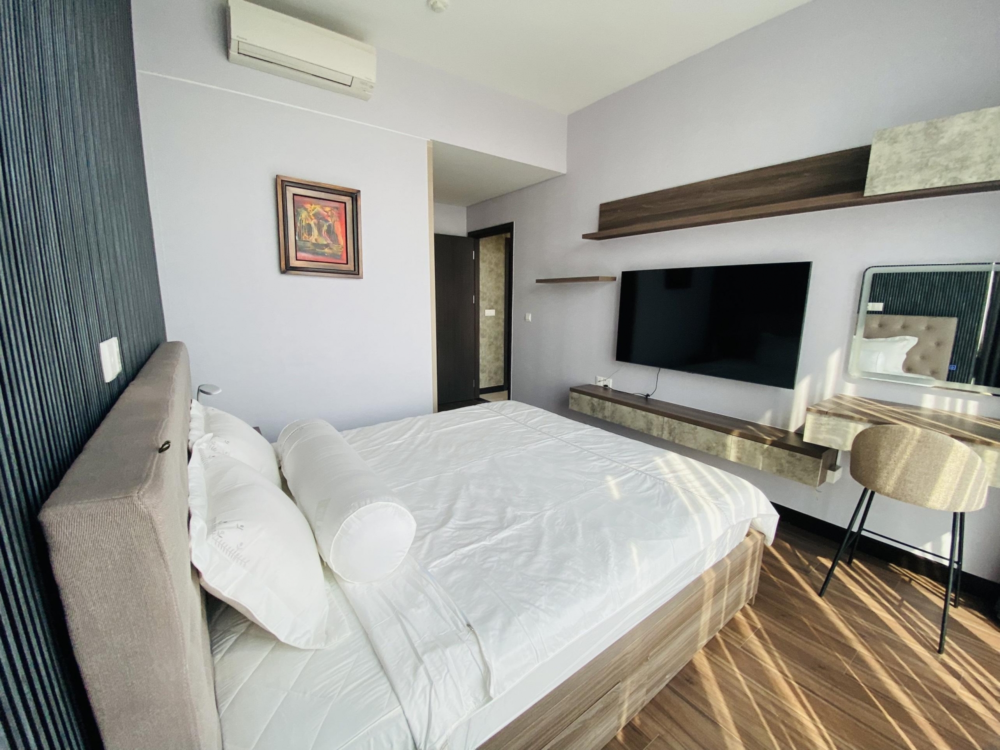 Căn hộ có bố cục 2 phòng ngủ, diện tích rộng rãi, thiết kế tối ưu công năng sử dụng. Nội thất được trang bị đầy đủ, phong cách hiện đại, màu sắc trang nhã, phù hợp cho khách thuê ở lâu dài, chuyên gia nước ngoài hoặc gia đình trẻ.