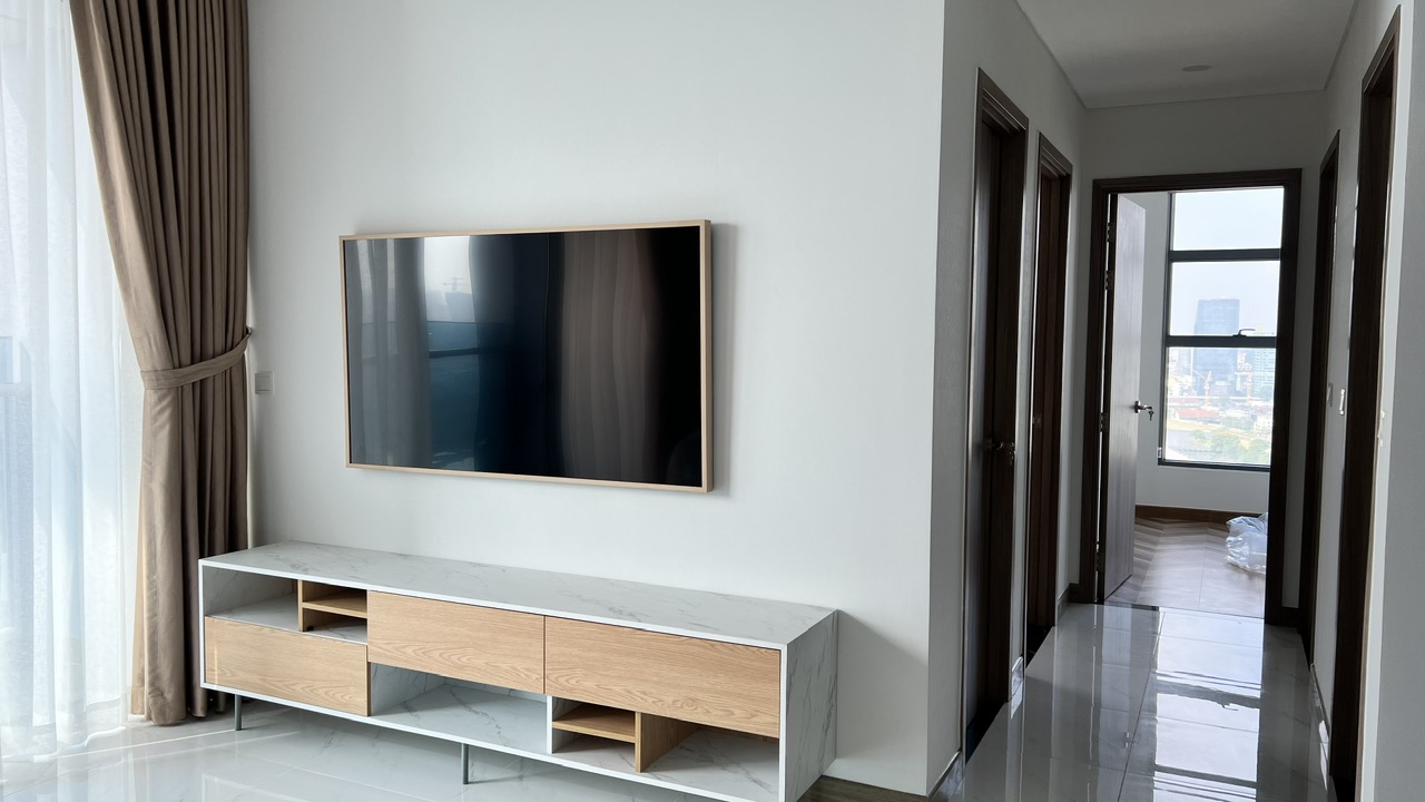 This corner 3-bedroom apartment at Sunwah Pearl is now available for rent, offering a rare open view overlooking Ba Son Bridge and the city skyline, with stunning fireworks views during major holidays.