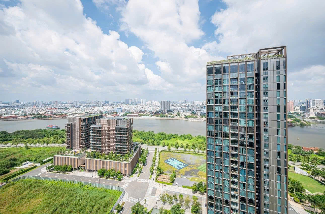 Residents enjoy premium amenities including a swimming pool, gym, retail areas, riverside parks, and 24/7 security services.
