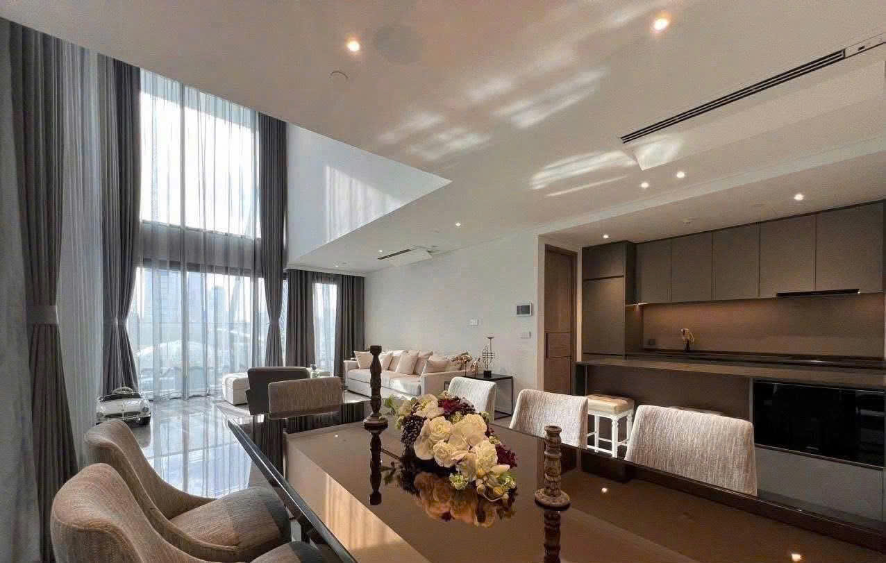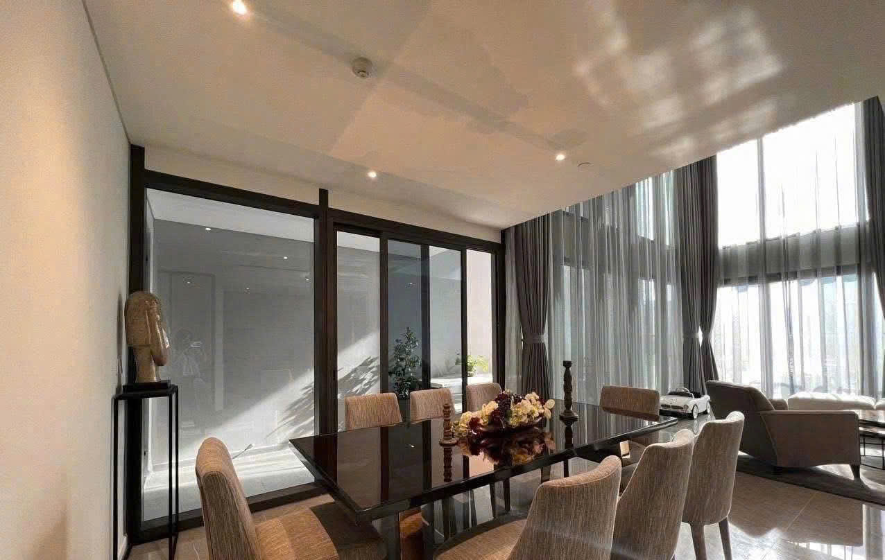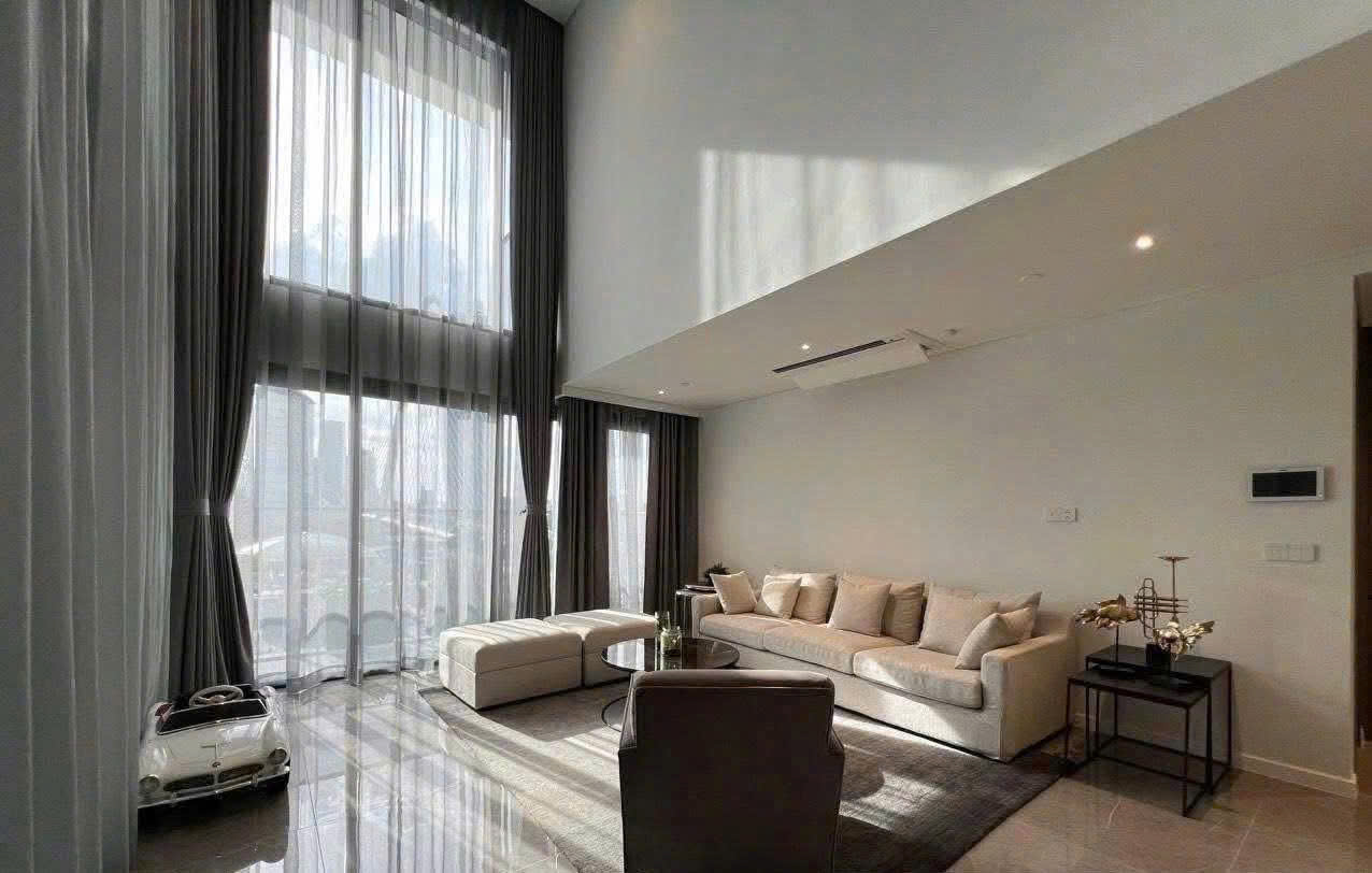 Located in the prestigious The Opera – The Metropole Thu Thiem, this elegant duplex apartment offers a spacious double-height living area, refined interior design, and a beautiful open view. The unit comes fully furnished with high-end interiors, featuring a harmonious layout between the living room, dining area, and modern kitchen.