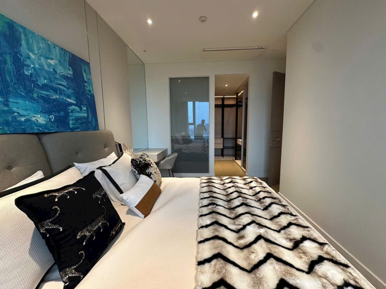 For sale is a luxury 2-bedroom apartment at The Opera – Metropole Thu Thiem, one of the most prestigious waterfront developments in Ho Chi Minh City. The apartment features a stunning unobstructed river view, overlooking the Saigon River, fireworks display, District 1 skyline, and the iconic Thu Thiem pedestrian bridge.